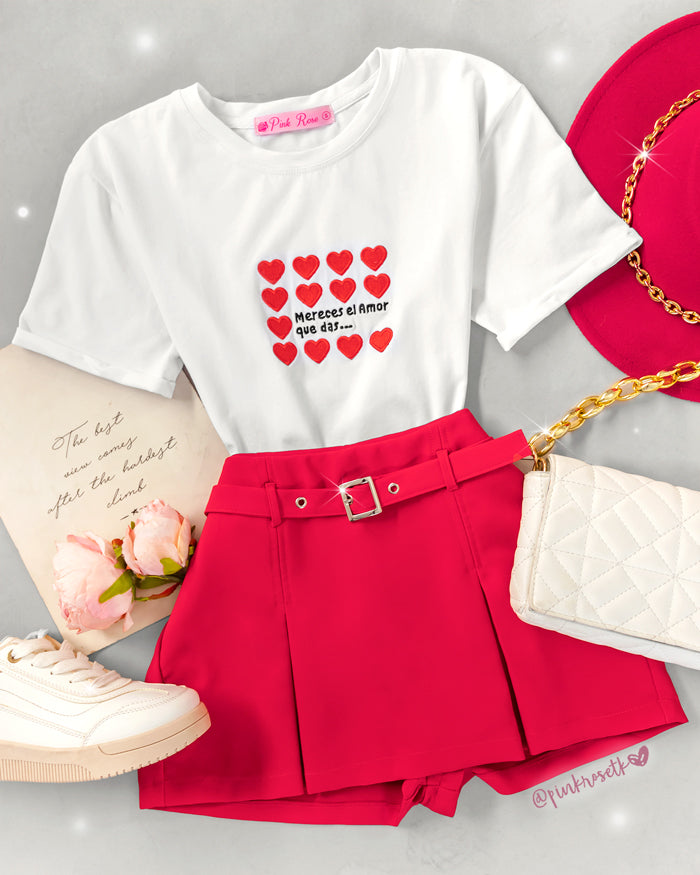 Camiseta de corte clásico con un diseño bordado que dice "Mereces el amor que das". Confeccionada en un material cómodo y transpirable, perfecta para un estilo casual con un mensaje inspirador.