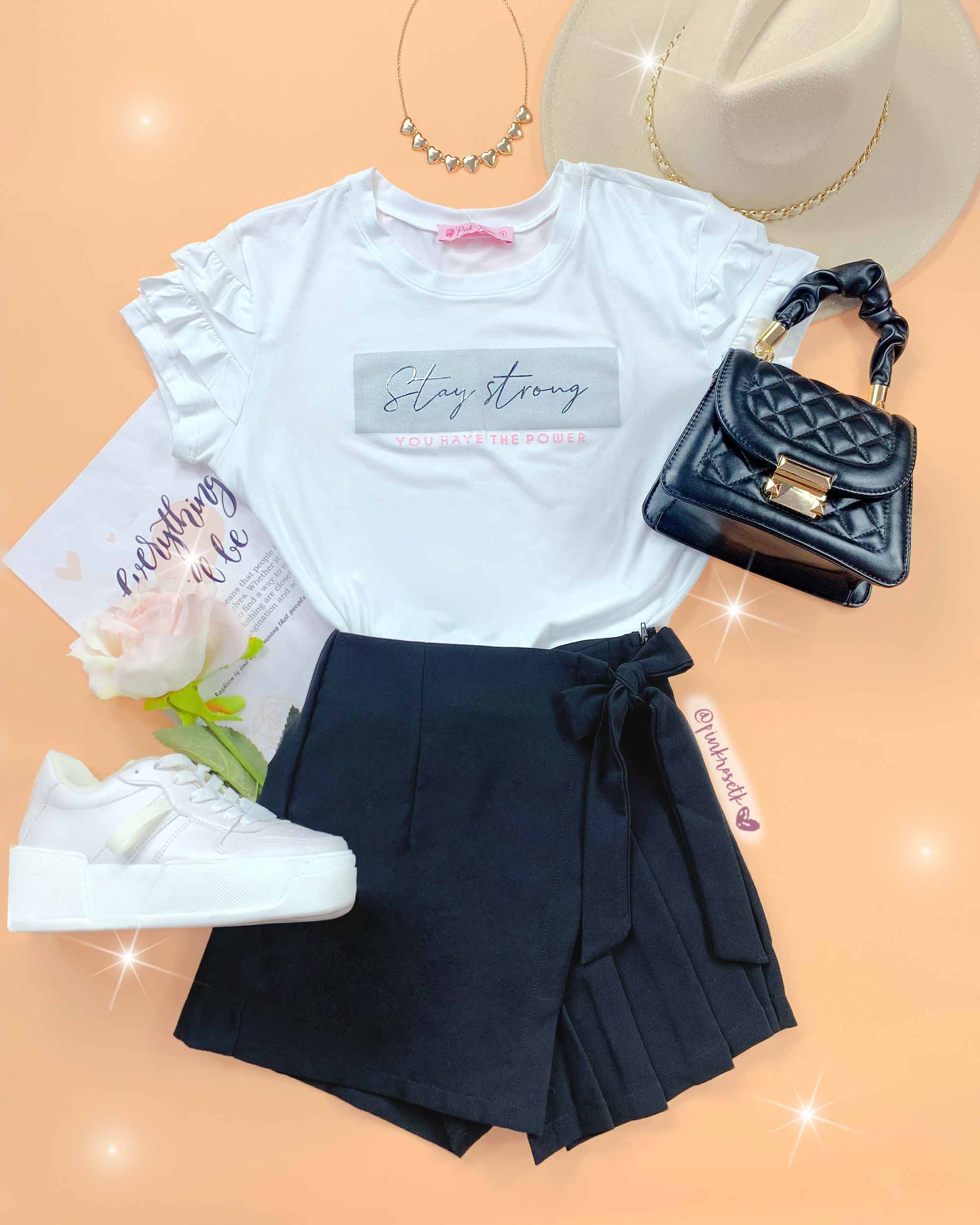 Camiseta stay strong con boleros en las mangas.