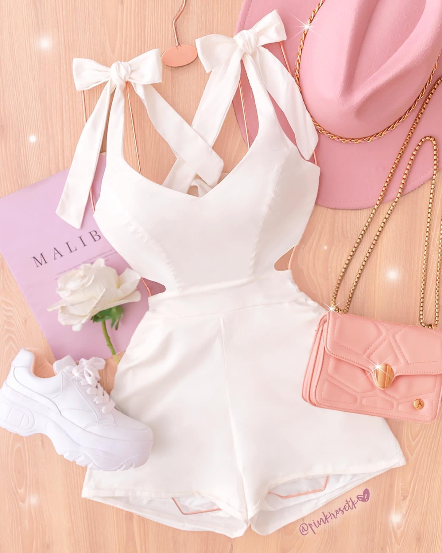 Romper blanco de tiras de moñitos con la cintura descubierta.