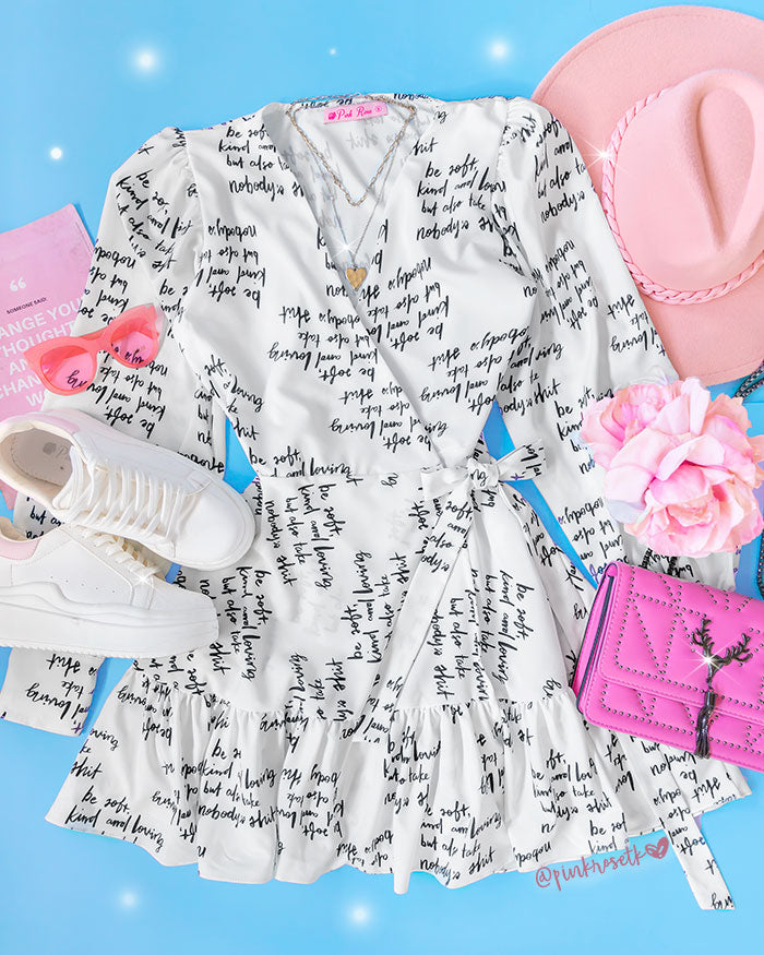 Dale un toque moderno y divertido a tu día con este vestido blanco estampado con textos en negro. Esta prenda única hecha de algodón de alta calidad te mantendrá fresca durante el calor del verano, mientras que su diseño innovador te ayudará a destacar entre la multitud.