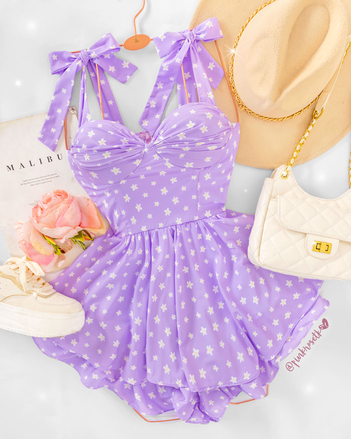 Descubre la comodidad y estilo con nuestro romper lila con copas, moñitos y un encantador estampado de margaritas. Perfecto para un día soleado o una noche de fiesta, su diseño único te hará destacar y sentirte hermosa. ¡Atrévete a lucir radiante con este romper!
