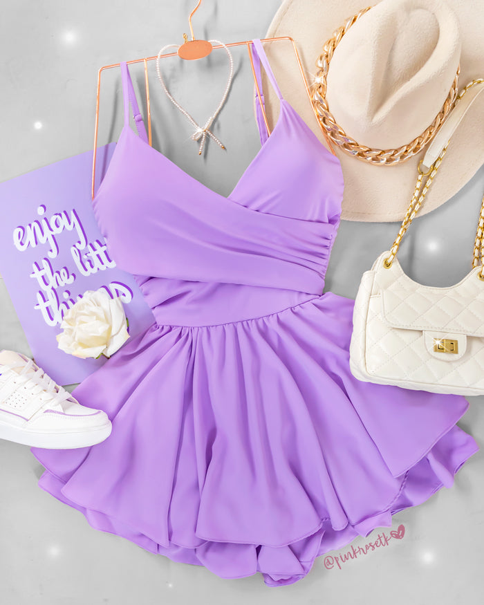 Romper lila lavanda tiras cruzado drapeado