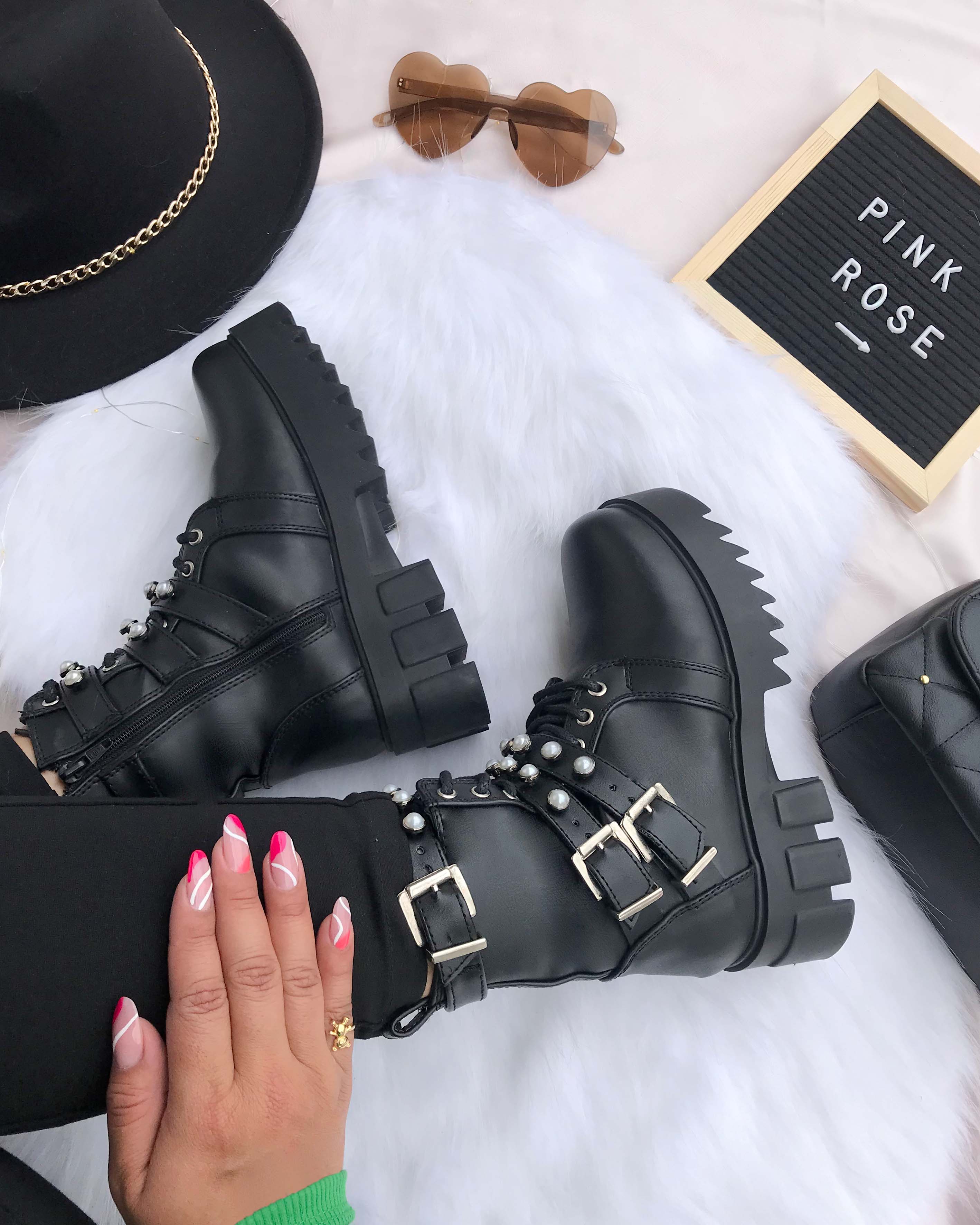 BOTINES DE CORDONES HEBILLAS Y PERLAS