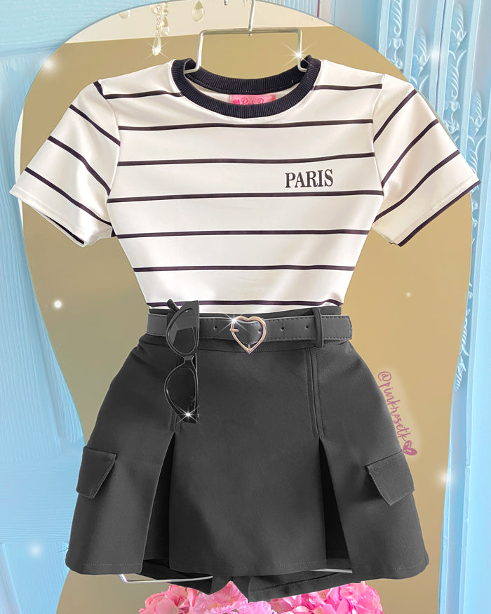 Camiseta básica de estilo atemporal con estampado de rayas y la palabra "Paris" al frente, agregando un toque chic y sofisticado. Su diseño clásico y versátil la convierte en una prenda esencial para cualquier guardarropa. Confeccionada en un tejido cómodo y ligero, perfecta para el día a día.