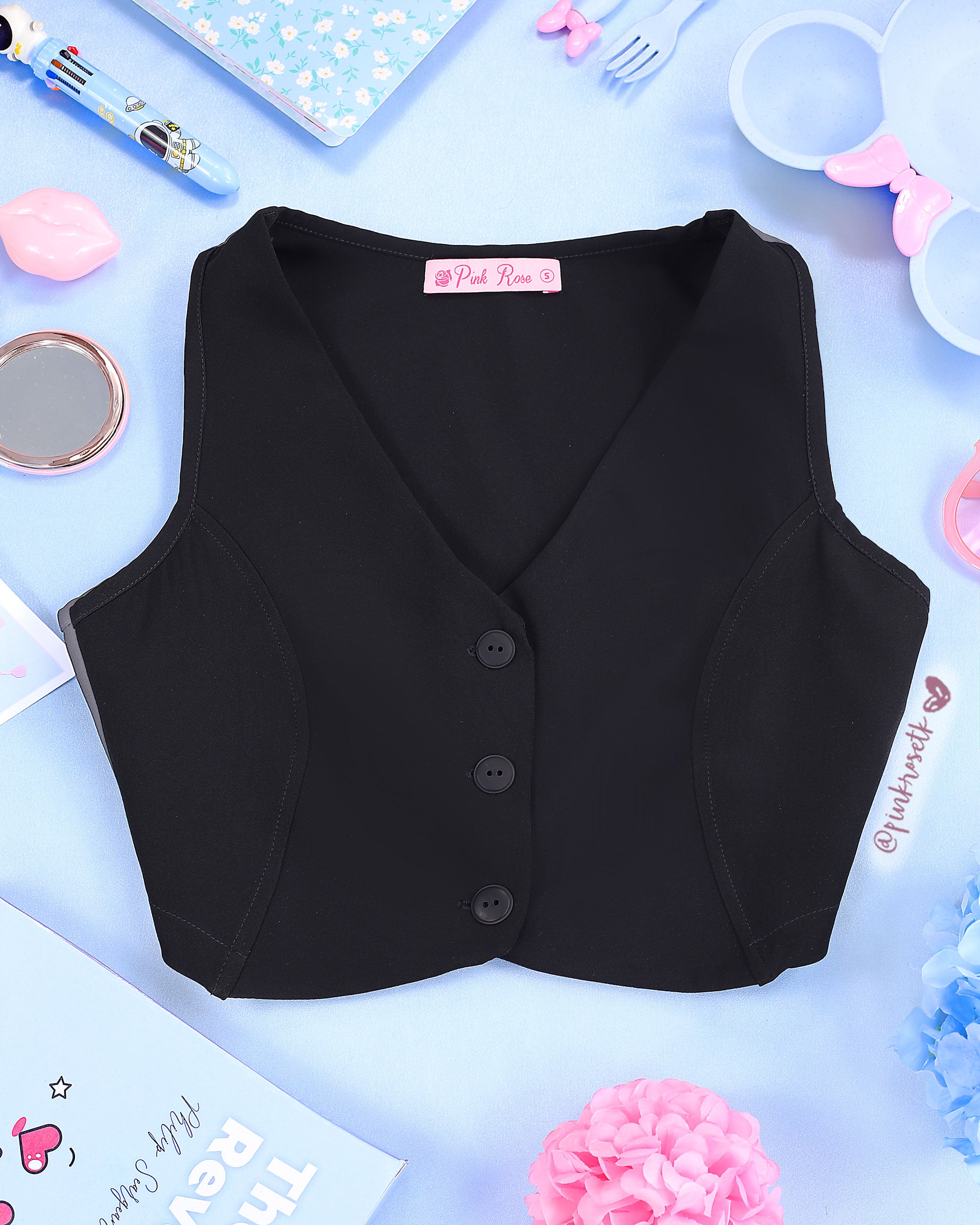 Presente un look formal y profesional con este chaleco negro de tres botones. El material de alta calidad es resistente al desgaste y tiene un corte moderno que se adapta cómodamente. Esta prenda es una inversión segura para tu armario.