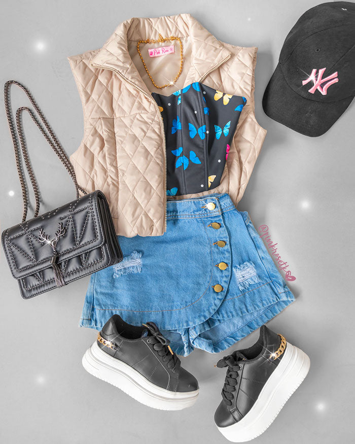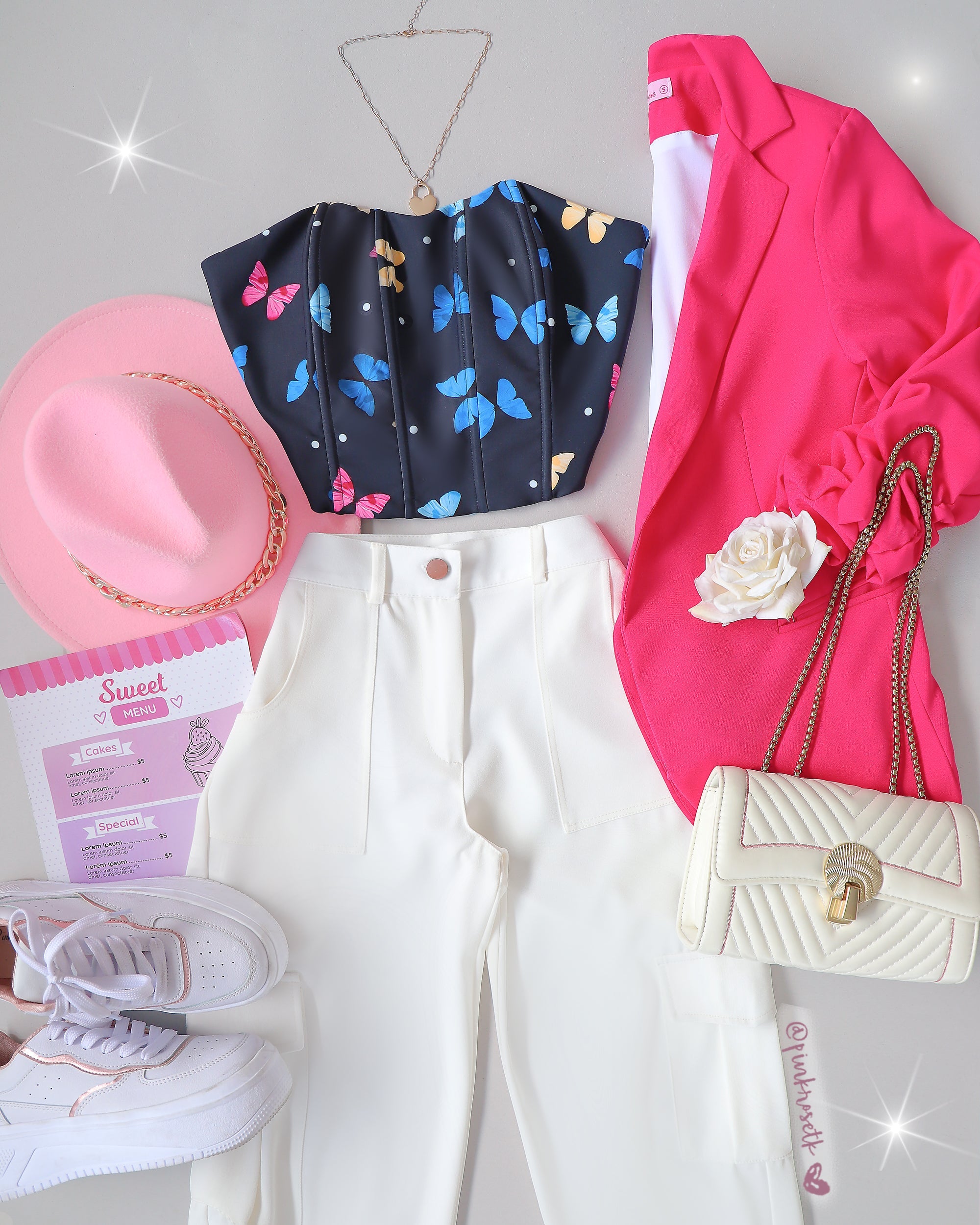 Exhibe tu encanto con esta blusa corta negra corsé de mariposas azules. Esta prenda te ofrece un look moderno y elegante para todas las ocasiones especiales. ¡Luce hermosa y única para todos