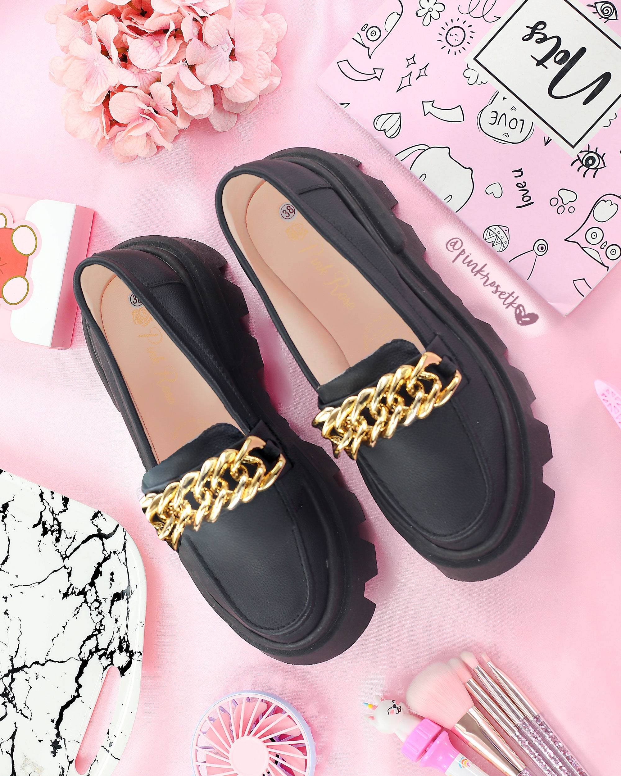 Estos modernos mocasines oxford son la combinación perfecta para su look formal. Están fabricados con materiales de alta calidad y presentan una cadena dorada que le dará un toque de elegancia a su atuendo. El color negro los hace ideal para combinar con otros accesorios para darle un aspecto formal de lujo.