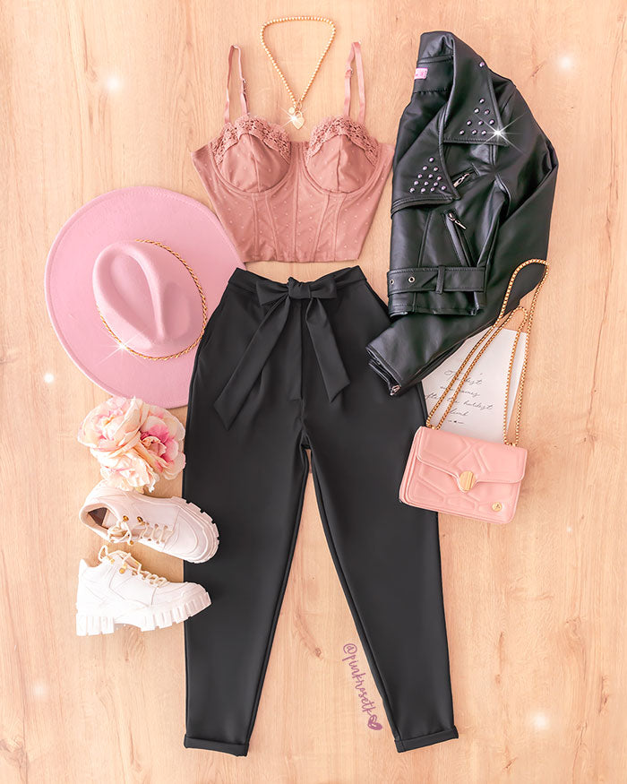 Pantalón de lazo y cremallera en noches de Viena ahora disponible en color negro.