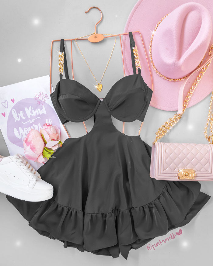 Romper negro top con varilla y tira con cadena