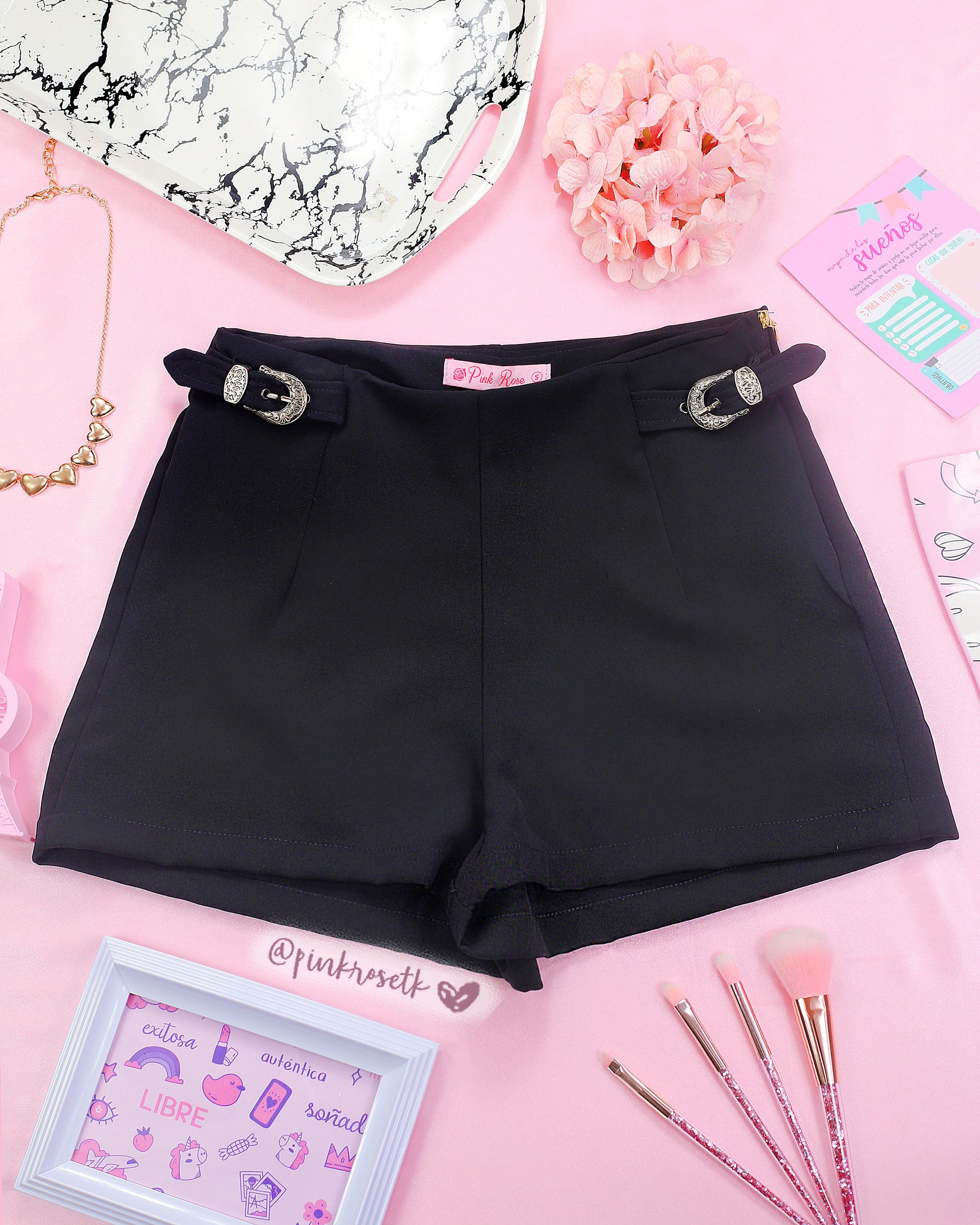 Descubre esta versión moderna del clásico short tiro alto negro para ocasiones especiales. Diseñado con hebillas en la cintura, combina comodidad con estilo, creando un look fresco y elegante. Perfecto para cualquier mujer con estilo.