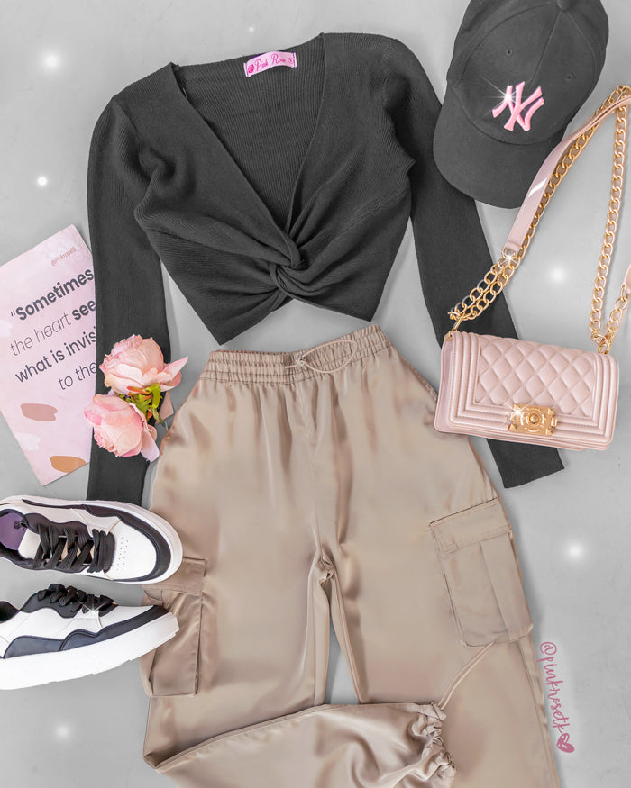 ¡Actualiza tu look con este top negro de manga larga con un elegante nudo en la parte delantera! Este top es perfecto para cualquier ocasión, ya sea para una cita o una salida con amigos. Su diseño único y femenino te hará destacar y sentirte segura de ti misma. ¡Hazlo parte de tu guardarropa hoy!