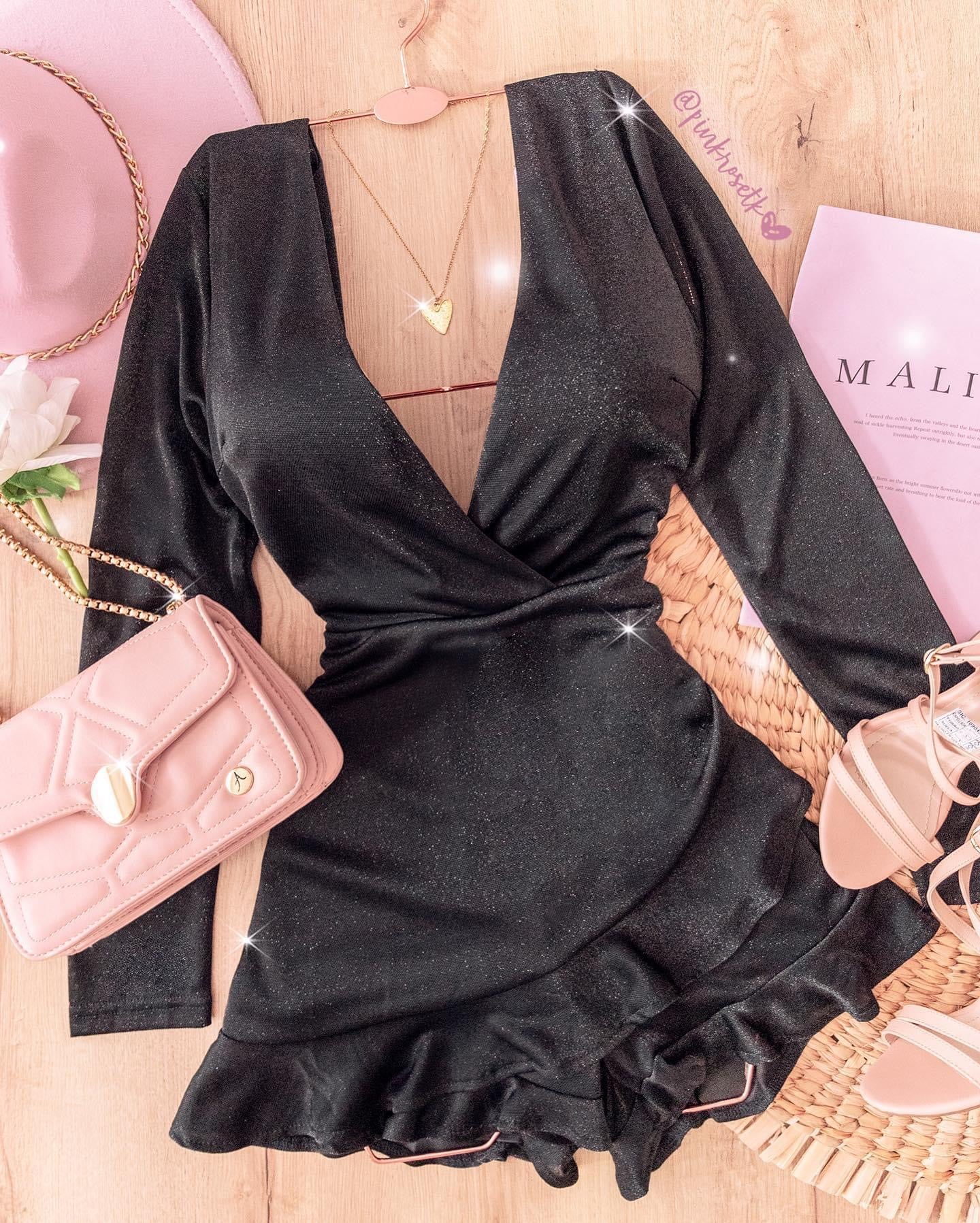 VESTIDO DE ESCOTE CRUZADO Y VOLANTES