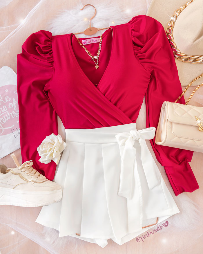 ¡Dile adiós a los aburridos looks con el atrevido bodysuit rojo en acetato cruzado! Esta prenda tendrá todas las miradas directamente a ti gracias a sus mangas puff. ¡Deja que tu estilo se destaque con brillo y elegancia!