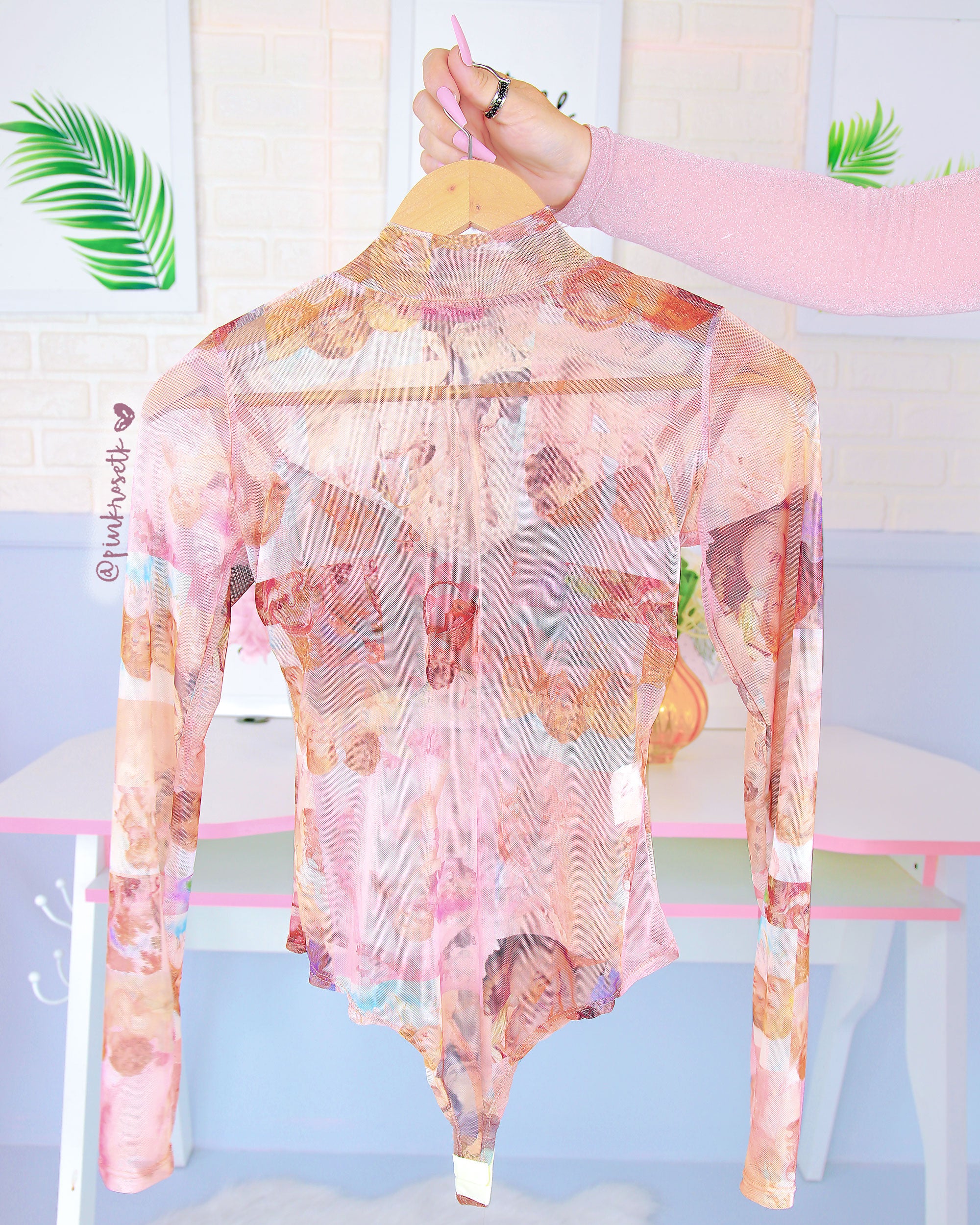 Bodysuit salmón malla tex estampado ángeles top debajo