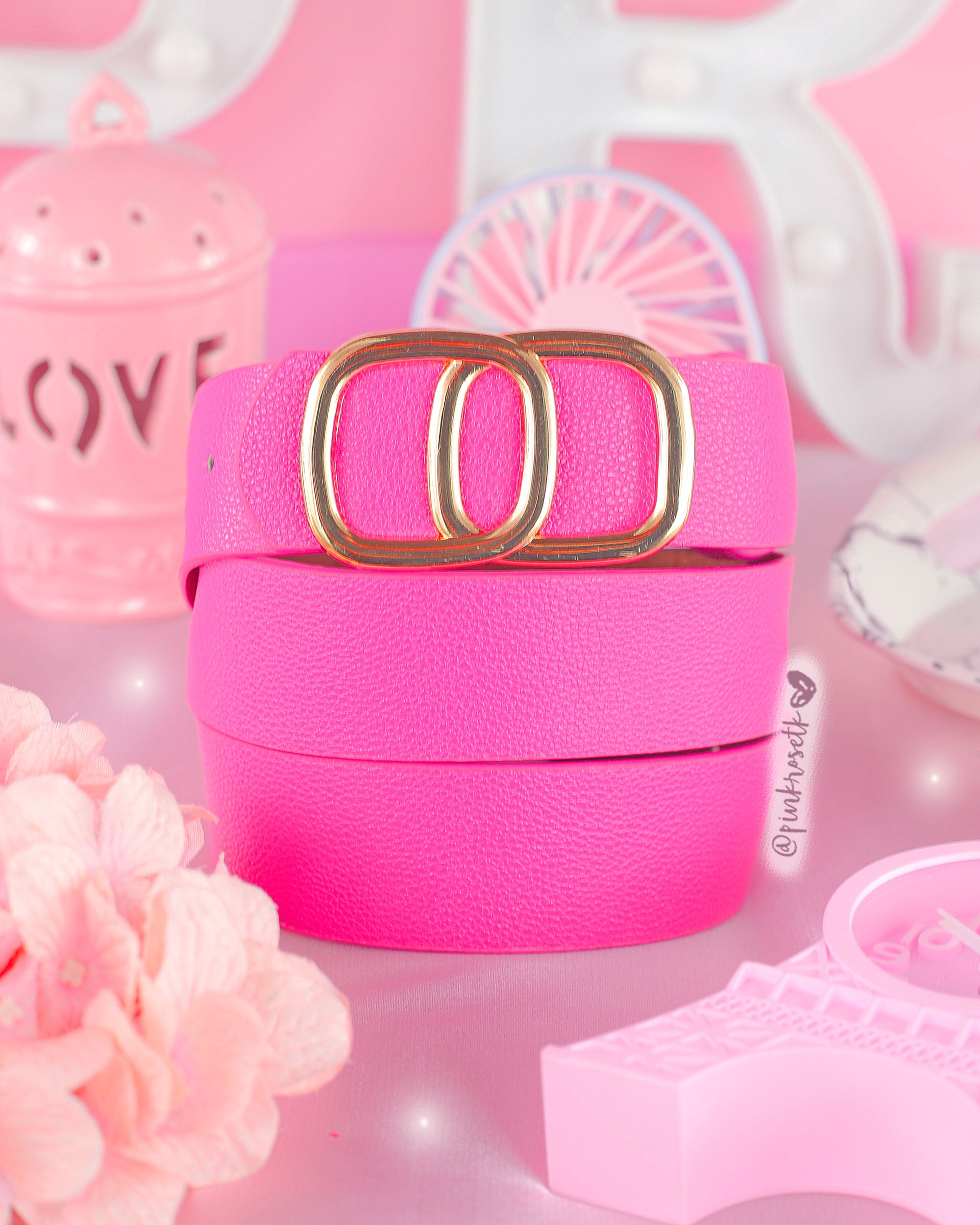Potencia tu estilo con este cinturón fucsia de herraje doble cuadrado dorado. Dale un toque vibrante a cualquier outfit y realza tu figura con esta pieza esencial para cualquier fashionista.