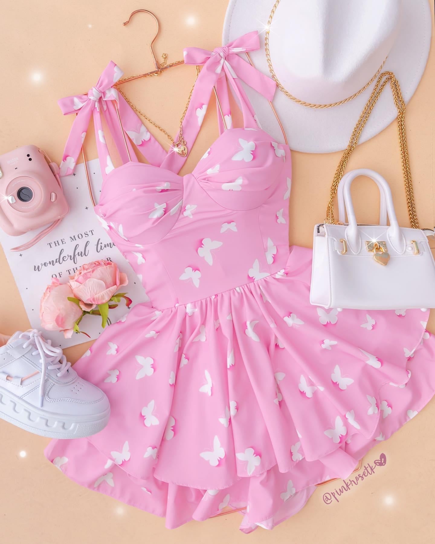 Un hermoso romper lleno de magia, lindo estampado de mariposas de primavera, con copas para resaltar nuestra figura y moñitos en los hombros para un toque tierno 🥰