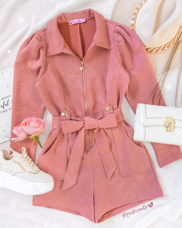 Romper oro rosa en piel de durazno manga larga puff