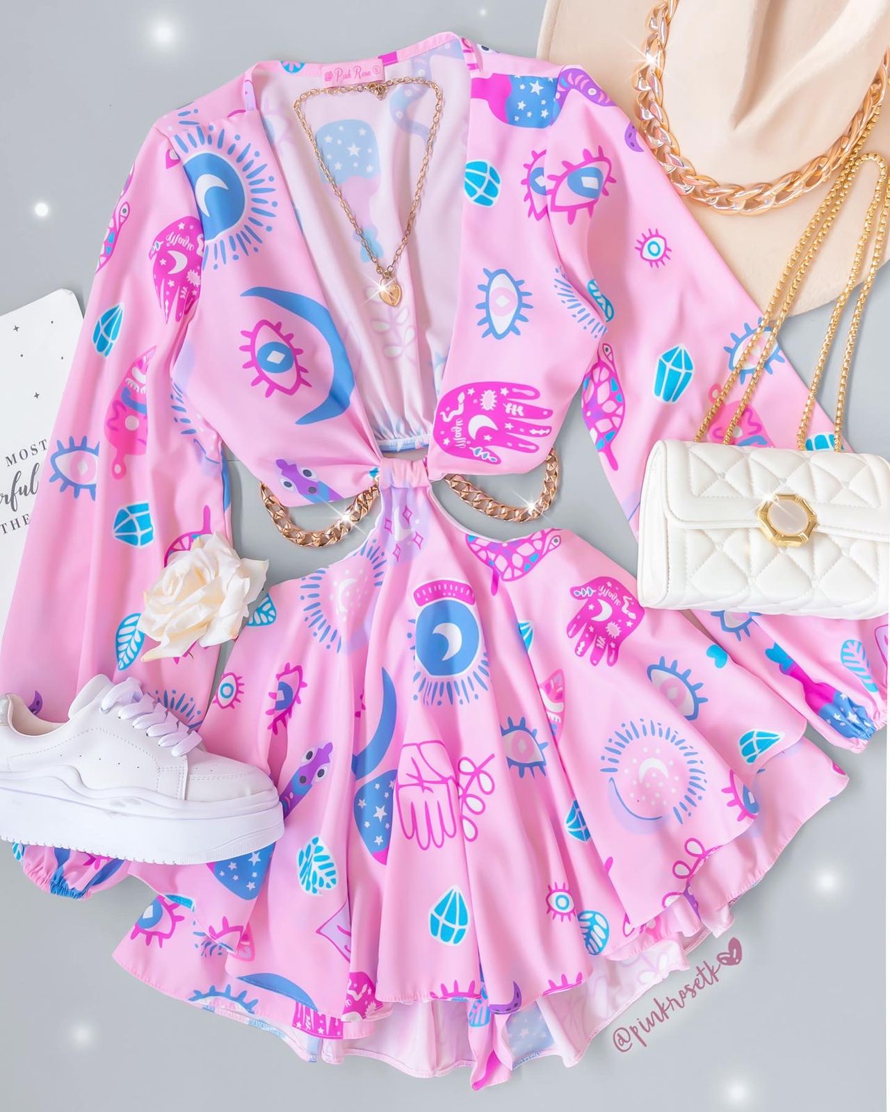 Este romper rosa es el perfecto equilibrio entre dulzura y sofisticación. Con mangas largas y una cadena en la cintura, es una pieza elegante y versátil que se adapta a cualquier ocasión.