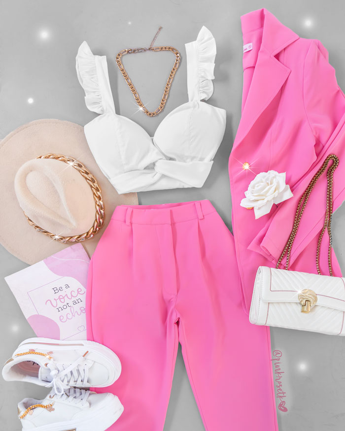 ¡Destaca con nuestro elegante set de pantalón y blazer en rosado chicle! Con botones dorados que le dan un toque de sofisticación. Ideal para cualquier ocasión, este conjunto te hará sentir segura y a la moda. Nunca pasarás desapercibida con este conjunto único. ¡Hazte notar y luce fabulosa!