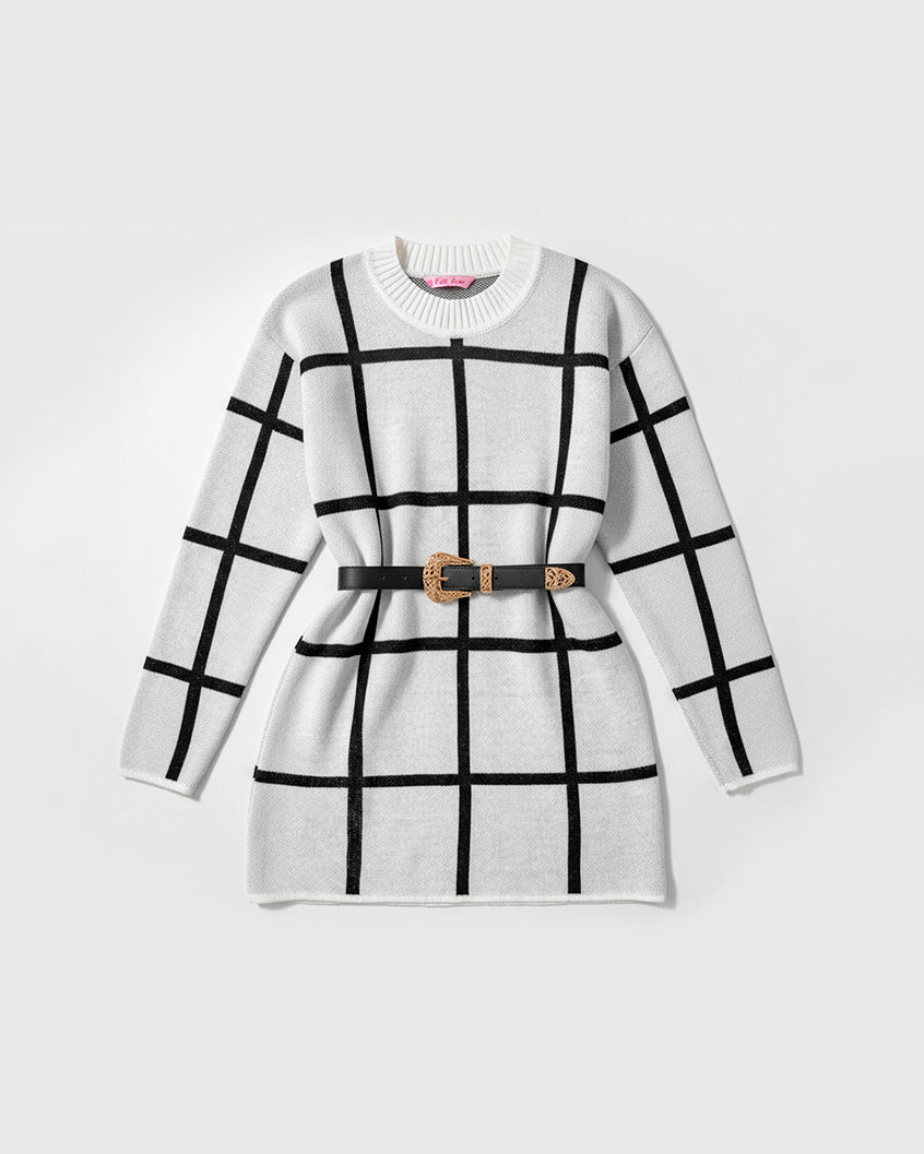 El vestido corto de cuadros con líneas negras es una prenda juvenil y versátil que combina frescura y estilo en un diseño atemporal. Su patrón de cuadros con finas líneas negras aporta un toque moderno y casual, ideal para destacar en cualquier ocasión. Gracias a su corte corto y favorecedor, realza la silueta y brinda comodidad en cada movimiento. Perfecto para combinar con zapatillas para un look relajado o con botas y accesorios para un estilo más chic, este vestido se convierte en una pieza infaltable en tu guardarropa.