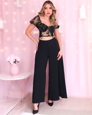 Pantalón Bota Ancha con Abertura y 2 Botones