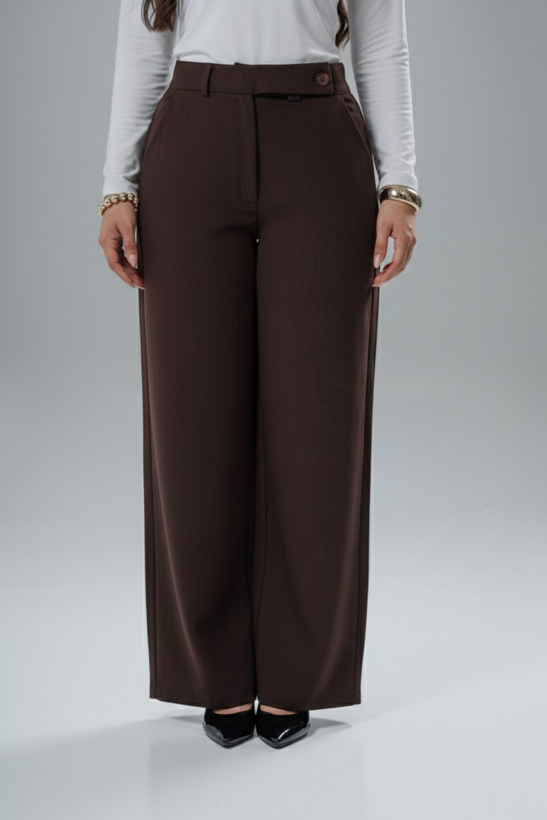 Su botón lateral aporta un detalle distintivo y funcional, brindando un acabado limpio y estilizado en la parte frontal. El corte de bota ancha estiliza la figura, alarga visualmente las piernas y proporciona libertad de movimiento, ideal para el uso diario o ocasiones especiales.