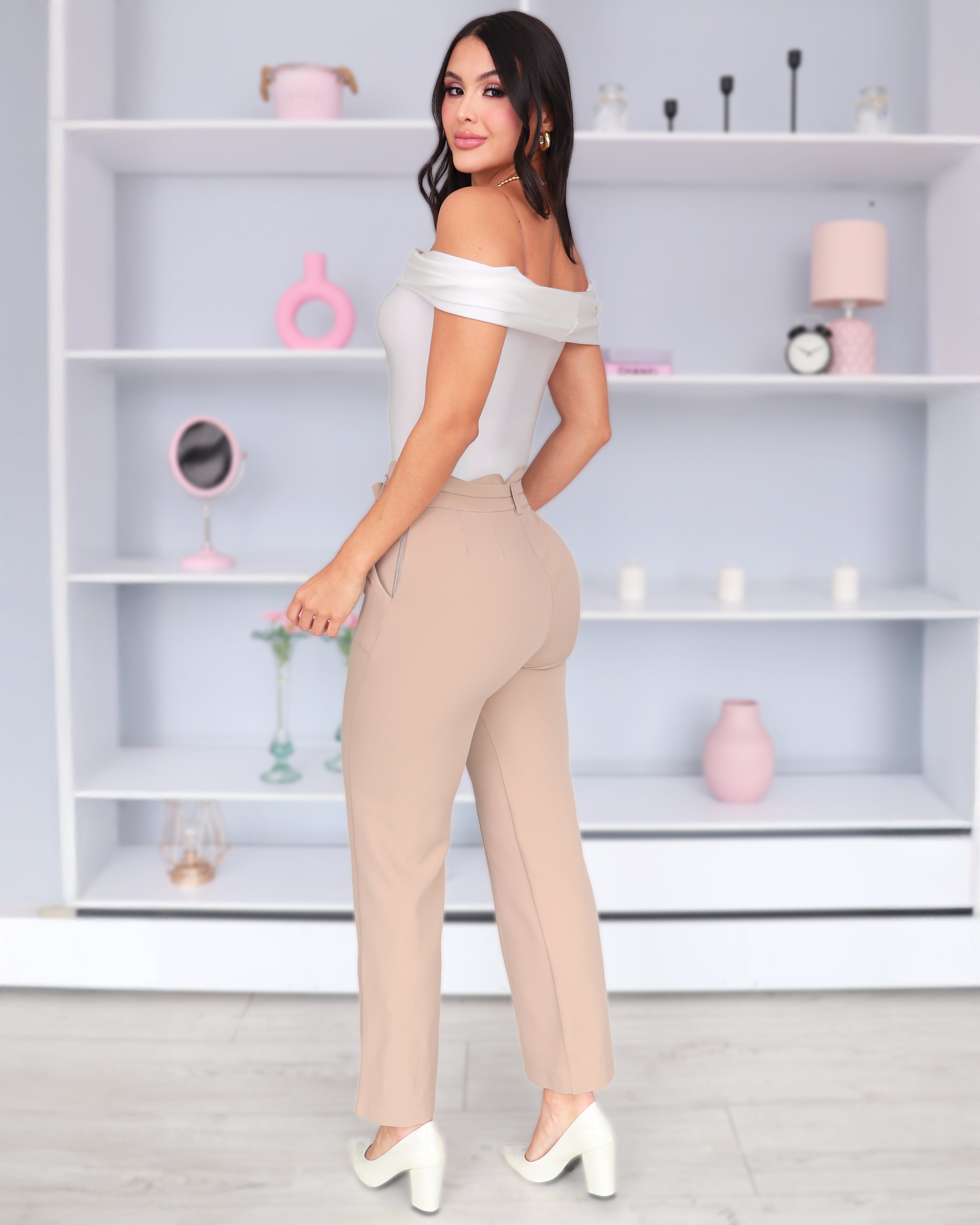 Pantalón Bota Ancha con Pretina, Lazo y Detalle “Moritas”