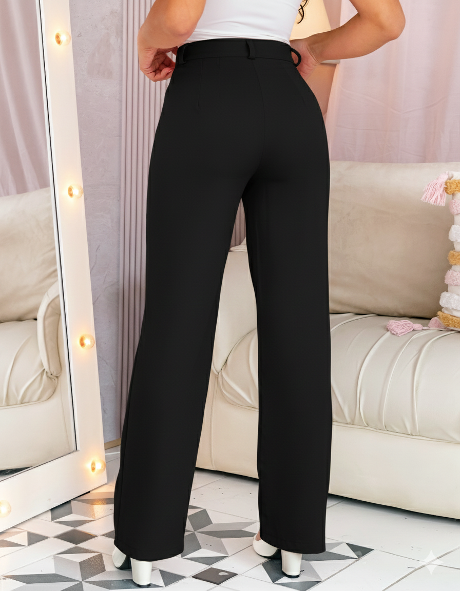 El diseño sencillo pero sofisticado incluye detalle de venas que aporta un toque distintivo y moderno, manteniendo la prenda elegante y fácil de combinar. Su corte de bota recta estiliza la figura y permite comodidad en el movimiento, ideal para looks casuales, formales o de oficina.