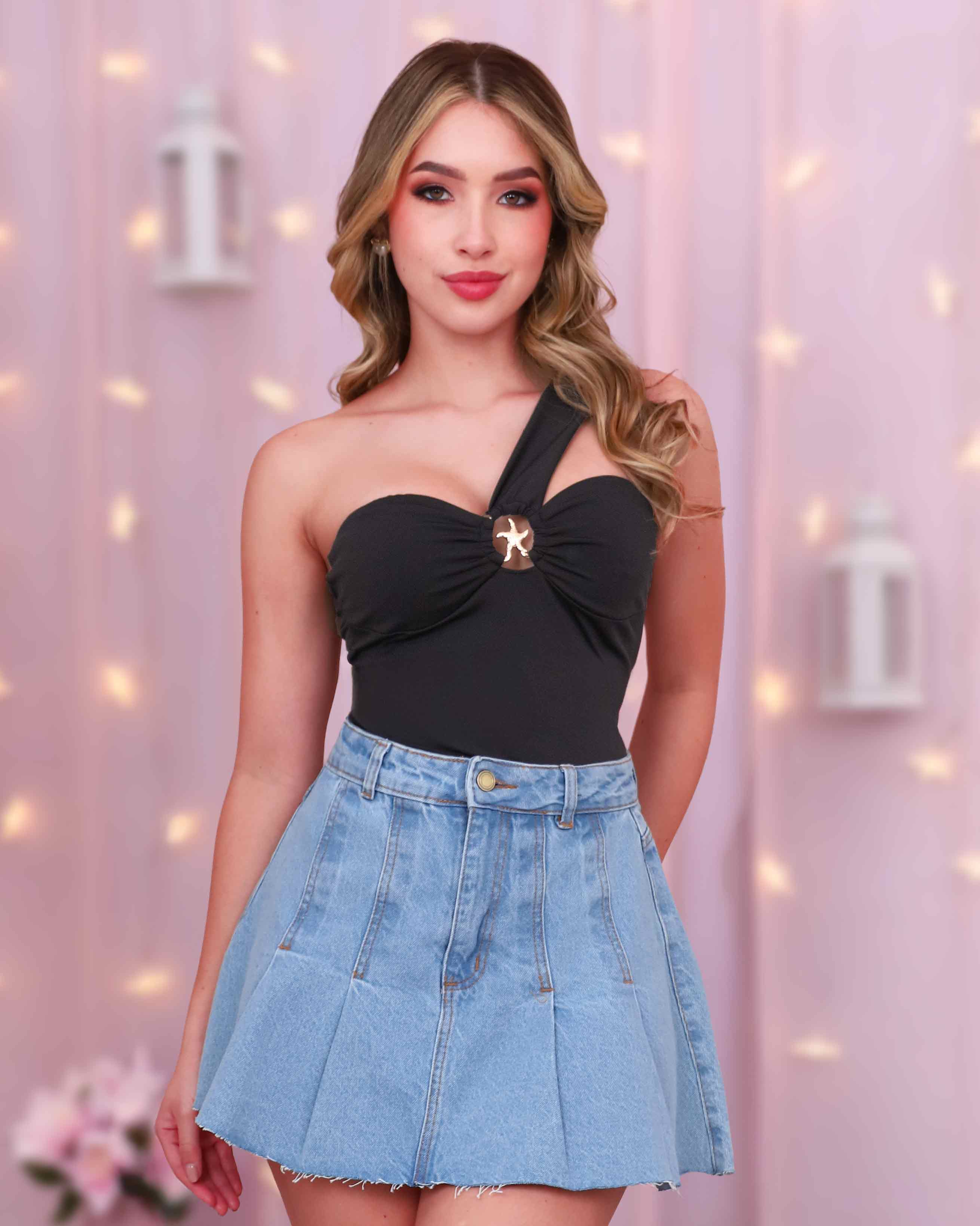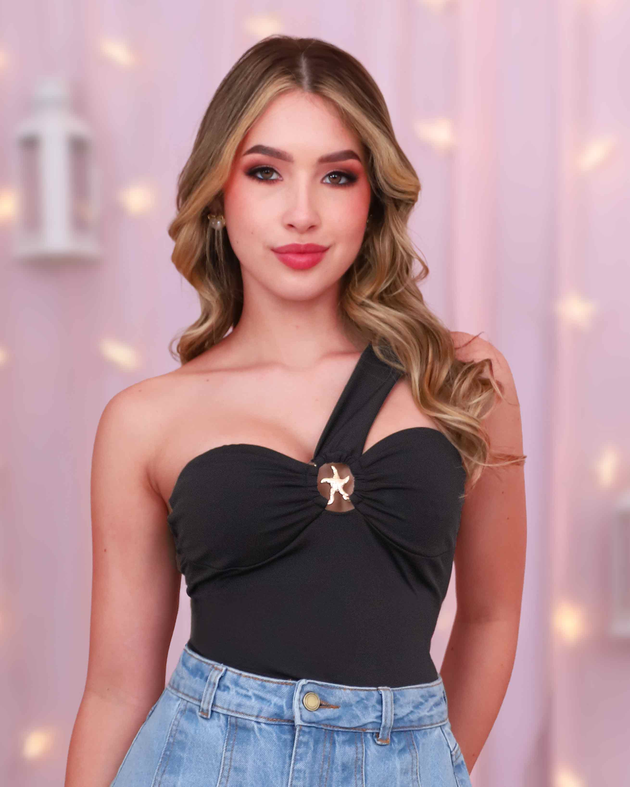 Body Halter con Aplique Dorado Central, una prenda que combina estilo y sensualidad en una sola pieza. Su diseño halter realza los hombros y el cuello, creando una silueta estilizada y femenina. En el centro, un delicado aplique dorado añade un toque de brillo y distinción, perfecto para elevar cualquier look.