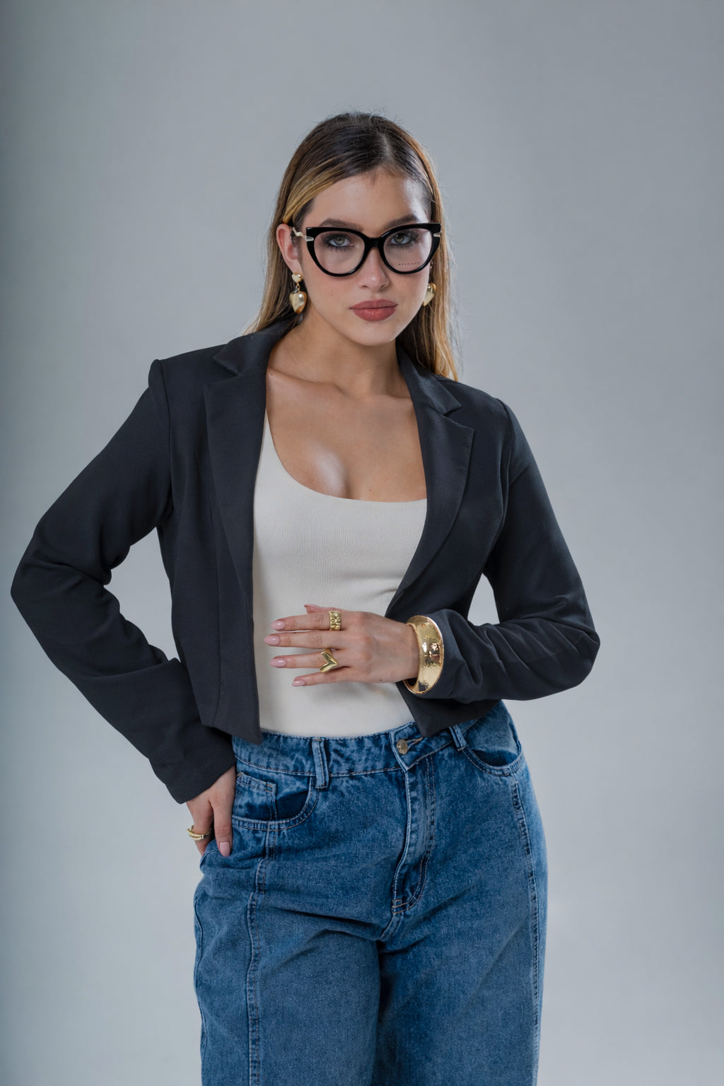 Luce un estilo sofisticado y moderno con nuestro blazer sencillo tipo torerito, una prenda versátil que realza cualquier outfit. Su corte corto y diseño minimalista aportan un toque elegante y femenino, ideal para combinar con vestidos, tops o pantalones de tiro alto. Perfecto para ocasiones casuales o formales, este blazer se convierte en una pieza clave de tu guardarropa gracias a su ajuste favorecedor y acabado impecable.