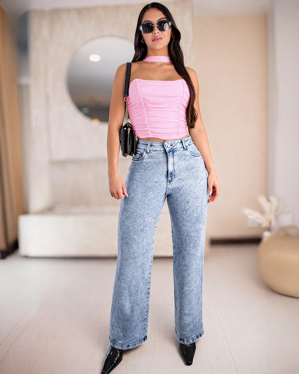 El diseño strapless con sujeción al cuello lo convierte en una prenda llamativa y versátil, perfecta para combinar con pantalones de tiro alto, jeans, faldas o prendas de vestir para un outfit de impacto tanto de día como de noche.