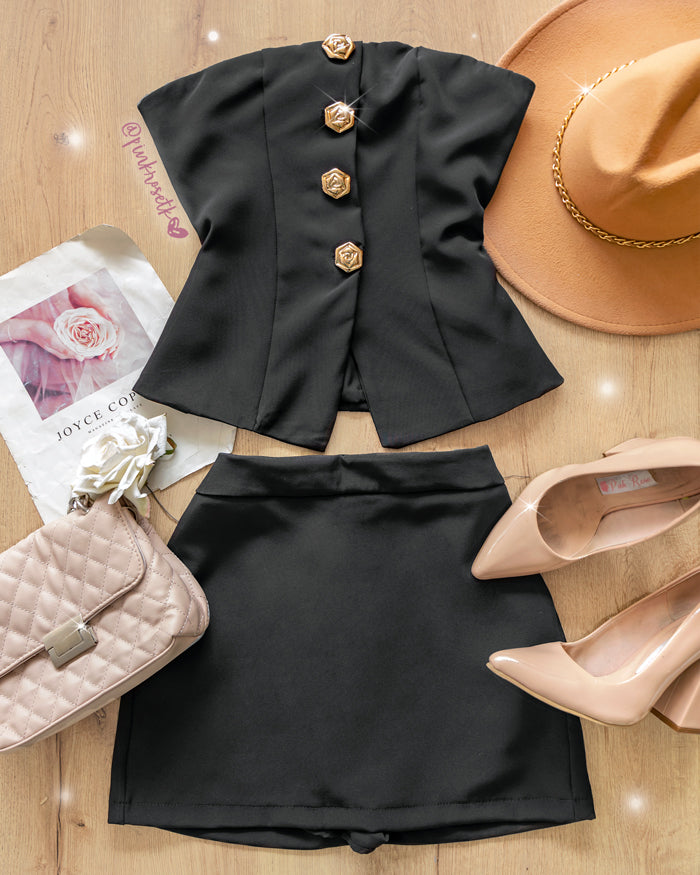 Set de 2 piezas: Falda y blusa con detalle de 4 botones en rosa