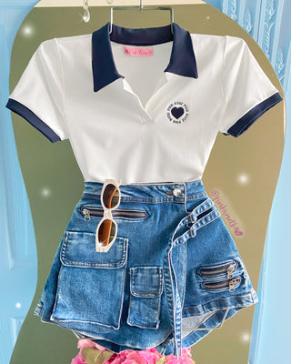 Falda Short Tapa Diagonal Aplique en Lado