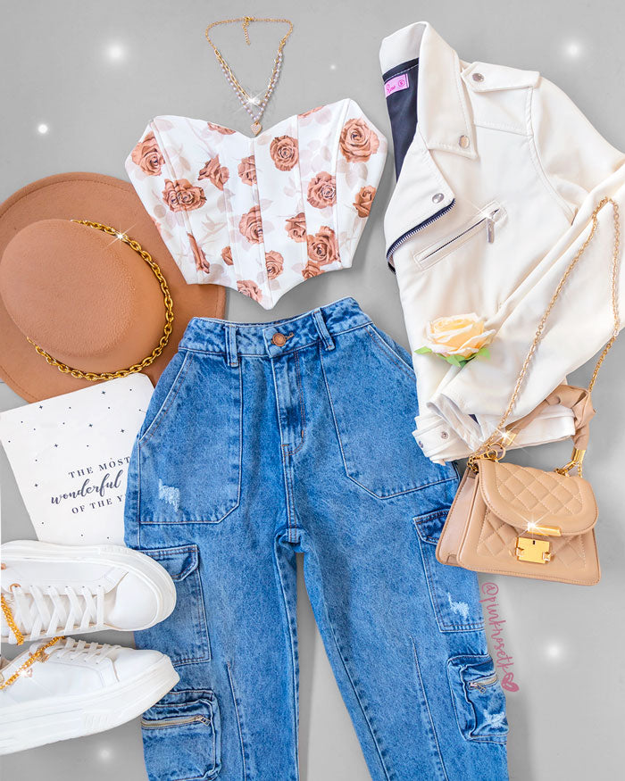 ¡Revive tu closet con la blusa blanca corsé flores café! Esta versátil creación agrega un toque moderno a cualquier ocasión con su corsé ajustado y detalles florales. Su tejido sedoso y suave te hará lucir y sentirte hermosa. ¿A qué estás esperando? ¡Conviértete en la más linda con esta blusa hoy!