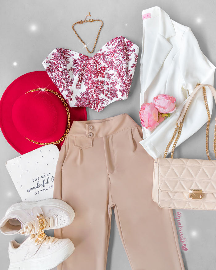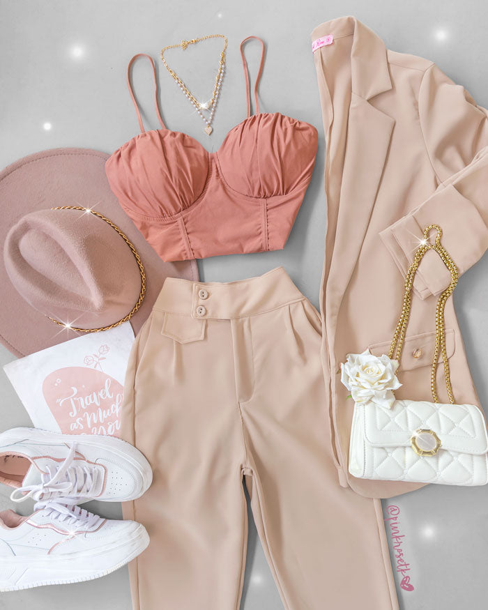 Lucirás regia con este pantalón beige de prenses y bajo doblado. Su diseño moderno y elegante te hará destacar en cualquier ocasión. ¡Escoge el tuyo y luce divina!
