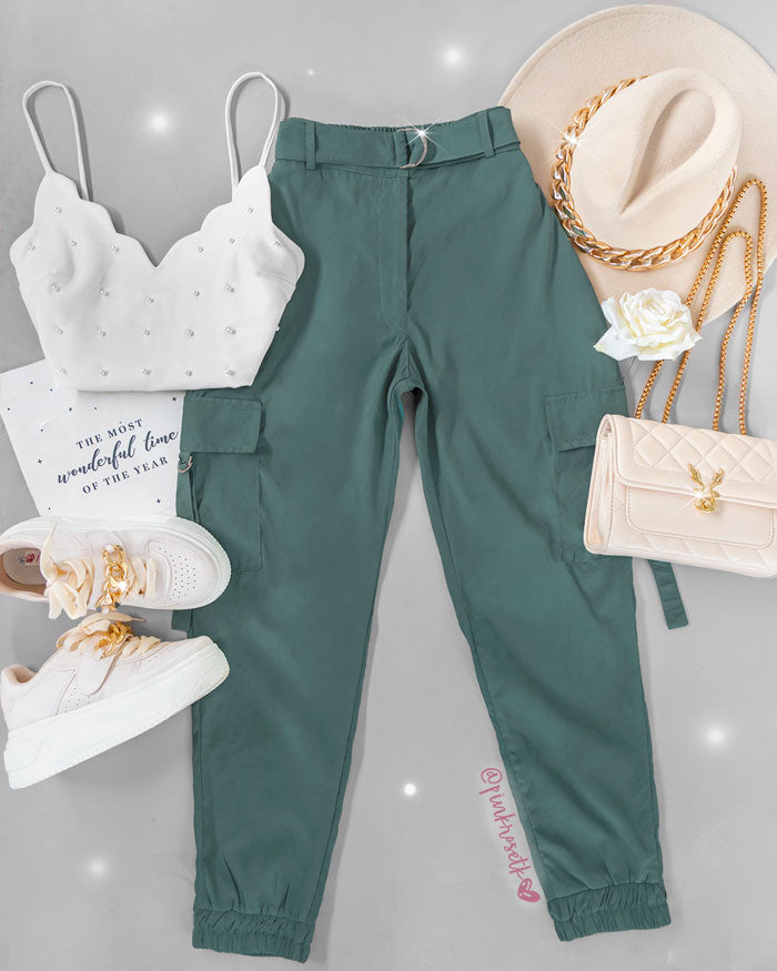 ¡Este pantalón verde cargo es el equipo perfecto para aventuras al aire libre! Con un cinturón ajustable para un ajuste seguro, y una bota con resorte para facilitar la escalada, te sentirás cómodo en cualquier lugar. ¡Prepárate para la aventura!