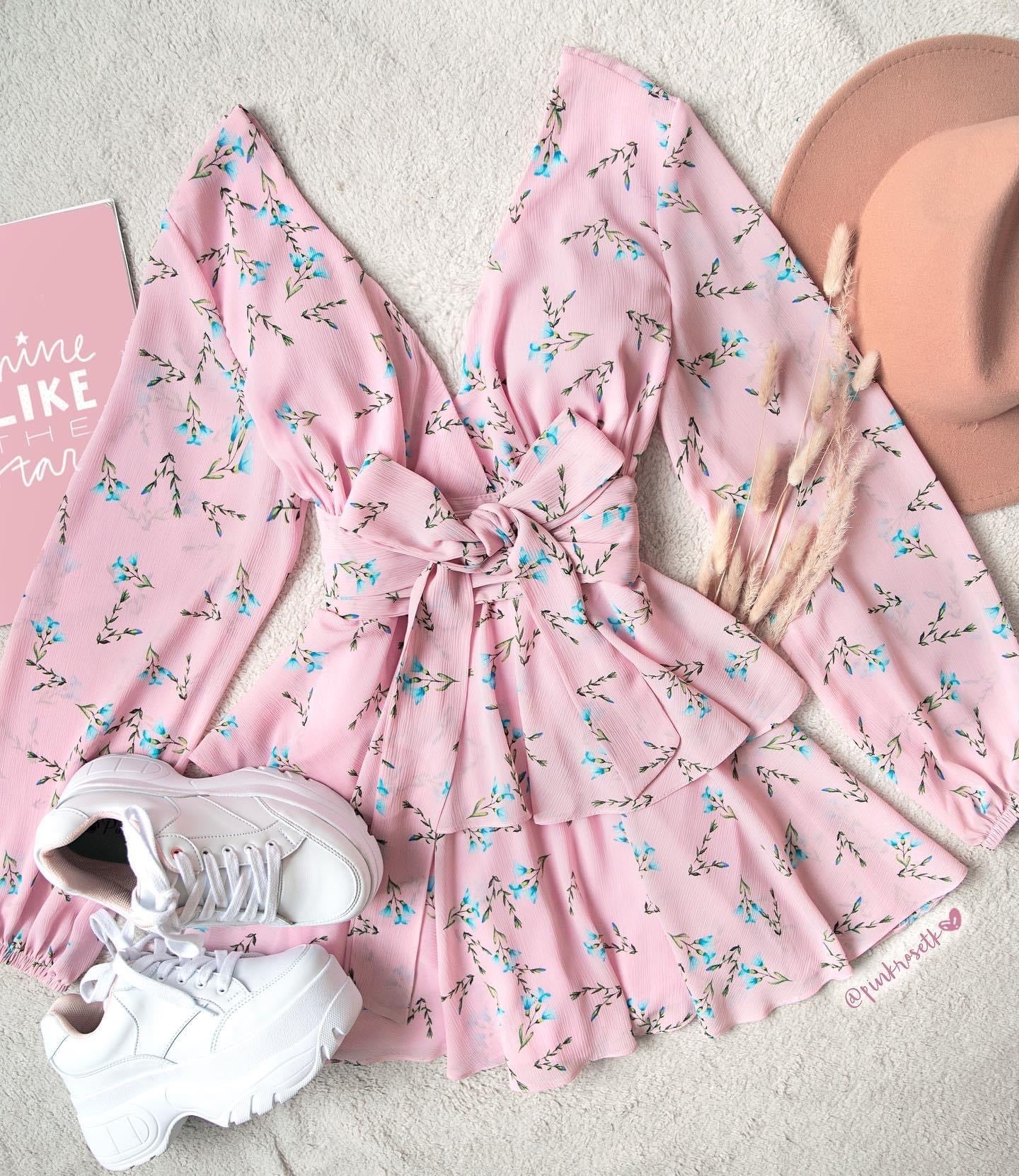 Romper de capa con flores azules con short por debajo