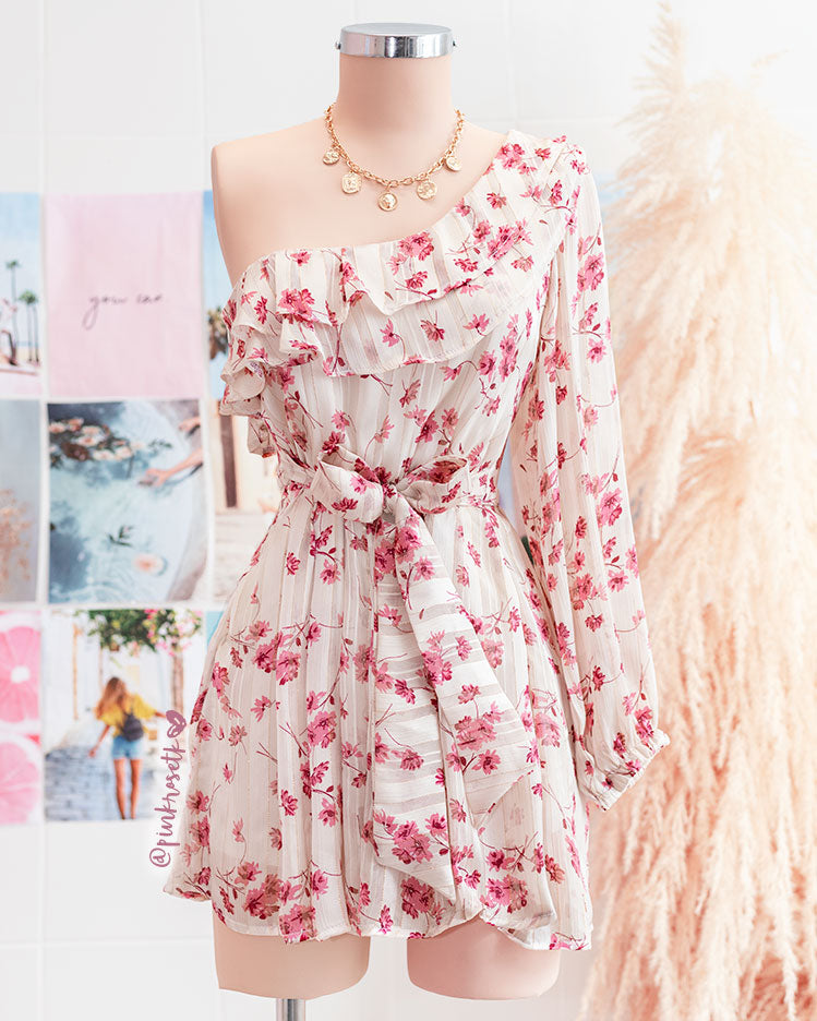 Hoy te traemos este lindo romper romántico, es de una sola manga, con moñito enfrente y una flores hermosas que te hará lucir muy dulce y hermosa.