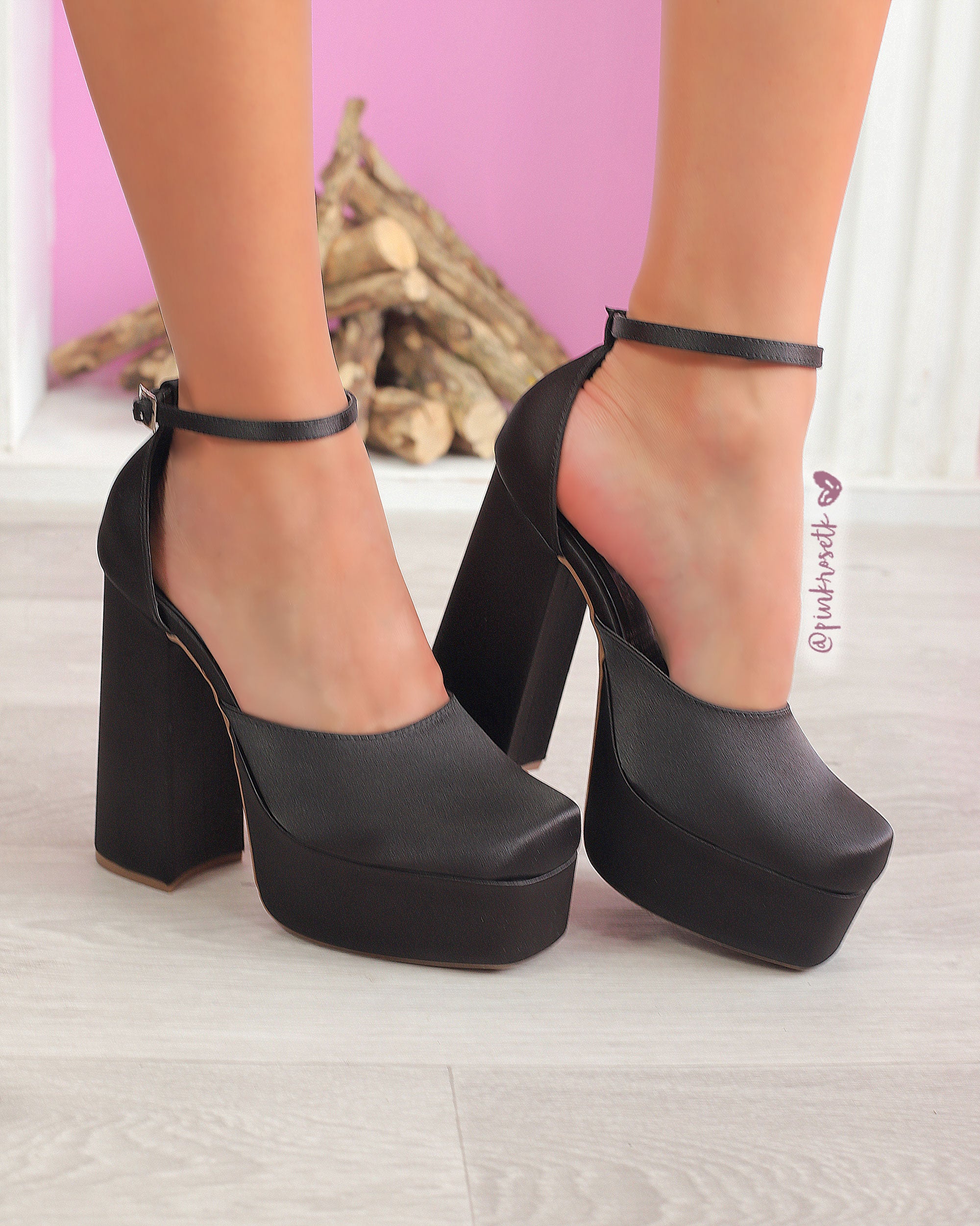 Sandalias negras cerradas de plataforma, un clásico renovado. Perfectas para un look elegante y cómodo en cualquier ocasión, con un toque de altura y estilo.