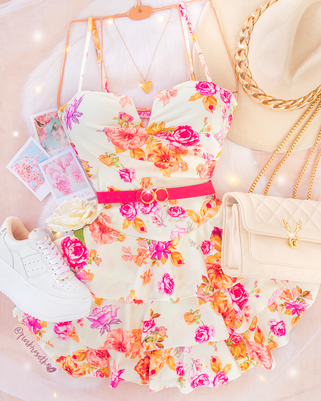 Este vestido de color beige es la prenda ideal para la primavera. Diseñado para brindarte la comodidad y la sofisticación perfecta para tus looks diarios. Está compuesto por un estampado floral delicado, una silueta moderna y una longitud corta que realza tus mejores características.