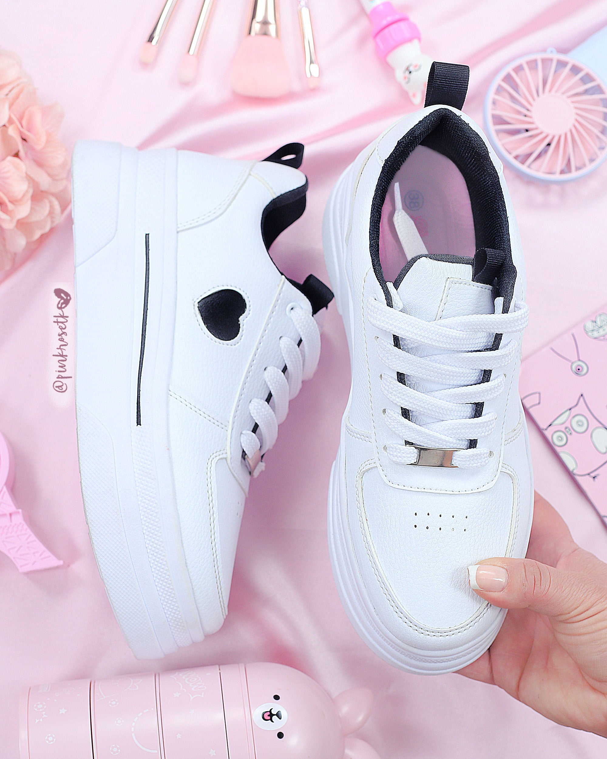 Tenis blancos de corazón negro