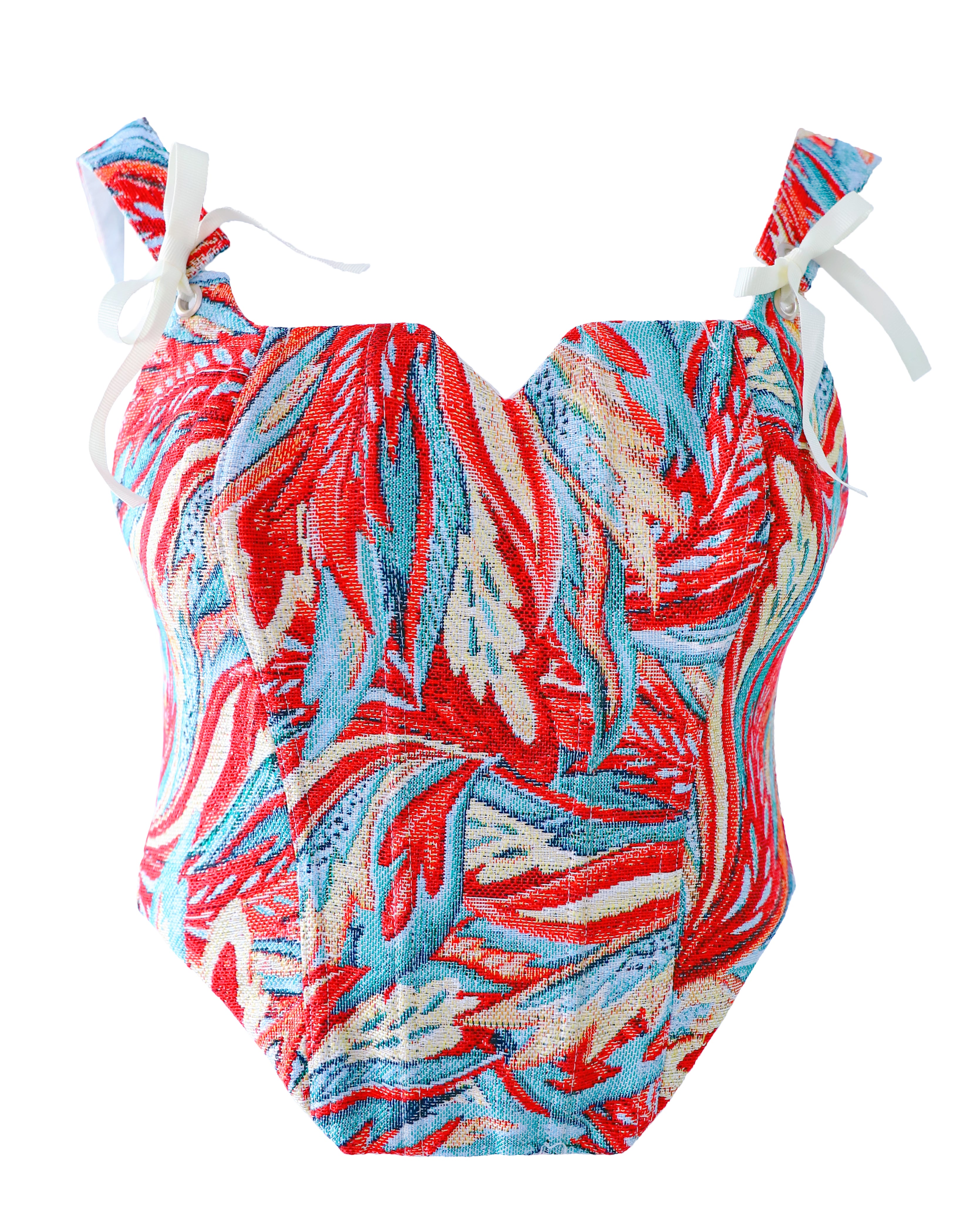 ¡Resalta con el top corsé rojo estampado fénix! Este top ajustado y estilizado cuenta con un estampado de fénix único, que agregará un toque de elegancia y sensualidad a cualquier conjunto. Cuenta con un diseño de corsé que realza tu figura y te hace sentir confiada. ¡Haz una declaración de moda con este top fénix!