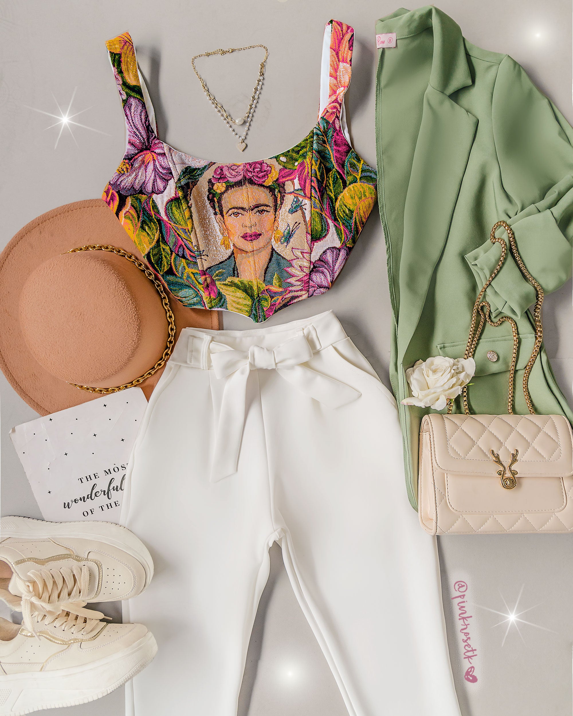 ¡Luce hermosa y con estilo con nuestro top estampado con la icónica Frida Kahlo! Sus tiras y amarre en la espalda te permiten ajustarlo a tu medida, mientras que su estampado único te hará destacar en cualquier ocasión. ¡Haz una declaración de moda y celebra el legado de Frida con este top imprescindible en tu guardarropa!