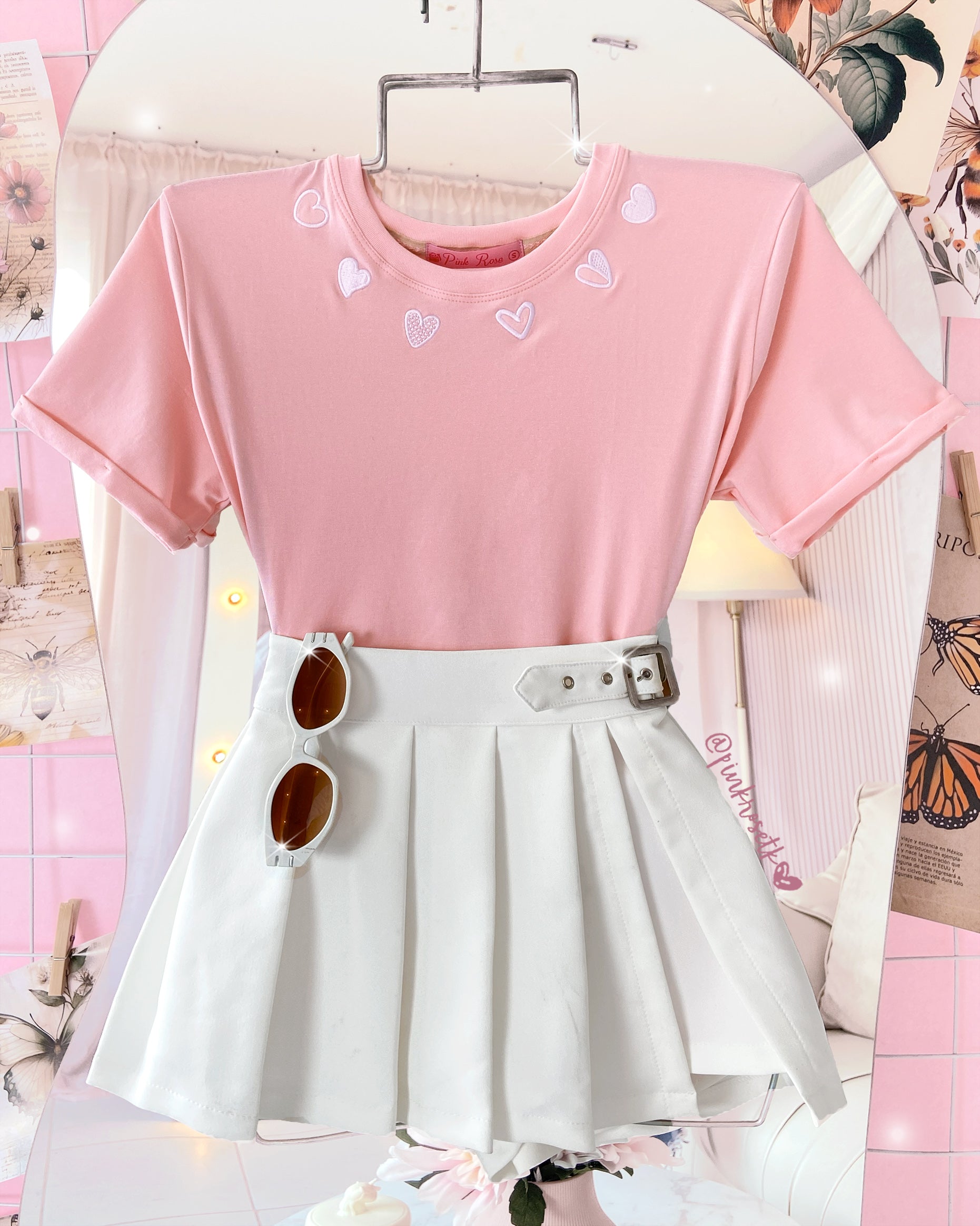 CAMISETA CON CORAZONES BLANCOS ALREDEDOR DEL CUELLO
