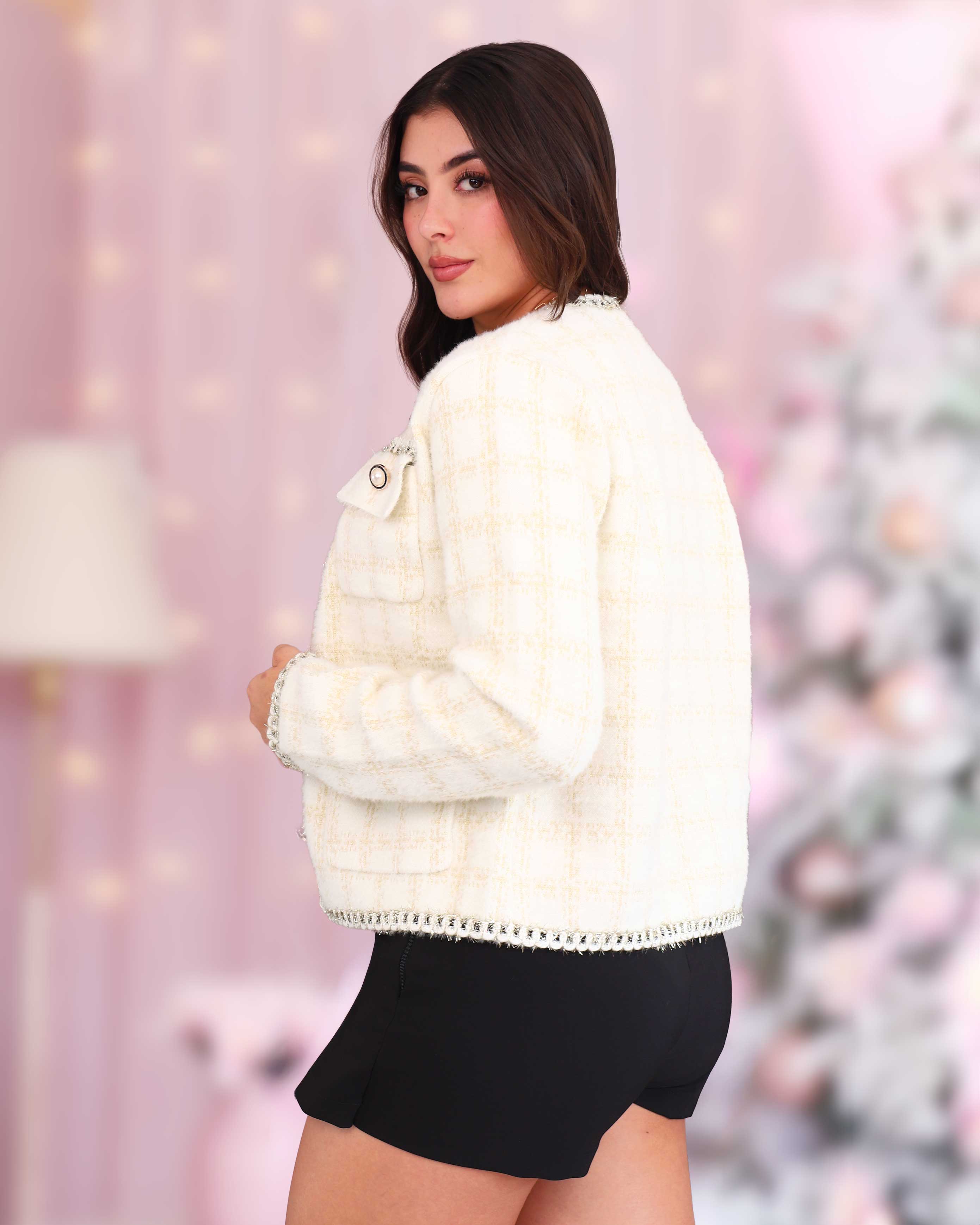 • Elaborada en tejido de alta calidad tipo Chanel, con textura distintiva y acabado refinado que aporta un look pulido y lujoso.