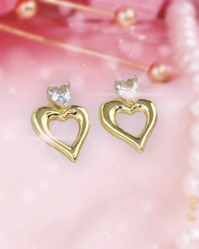 Eleva tu look con estos delicados Aretes de Corazón con Diamante en material fantasía, una pieza diseñada para ofrecer brillo, feminidad y un toque romántico en cualquier ocasión. Su diseño combina dos elementos encantadores: una piedra tipo diamante en corte de corazón, que corona la parte superior, y un colgante en forma de corazón abierto con acabado dorado brillante que aporta elegancia y modernidad.